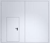 Ворота распашные (3,0 мм+1,4 мм рекомендовано при размерах более 3*3 м) противопожарные Ei60 / технические двупольные равнопольные: короб закрытого типа усиленный из сложно гнутого профиля из стали З мм, с / без порога, короб угловой с наличником по 50 мм / торцевой / разборный (при необходимости делаем по умолчанию). Полотна коробчатого типа (типа «СЭНДВИЧ») из стали 1,4 мм с наполнением базальтовой плитой 60-80 мм и усилением по периметру профилем, петли капли 160*25 мм по З шт. на полотно. Замок «Страж» с черной ручкой на планке на рабочей створке, не рабочая створка на шпингалетах (при необходимости ставим гаражные задвижки по умолчанию). Уплотнение по периметру (Е+Д), термолента (если Ei60). Ral стандарт шагрень, открывание только наружу.