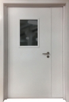 Полуторная техническая дверь со стеклом, добором и двухсекционными петлями Арт142